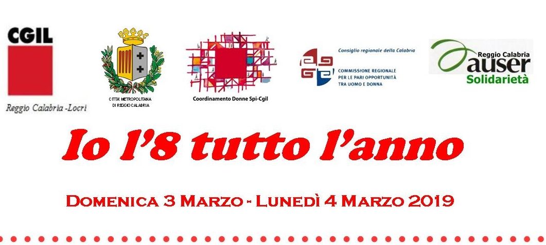 La Giornata Internazionale della Donna si celebra l’Otto Marzo con l’intento di ricordare le sue conquiste politiche e sociali. La Cgil Reggio Calabri – Locri, il Coordinamento Donne dello SPI (Sindacato Pensionati Italiano) e Auser Solidarietà, sensibili ai temi che riguardano l’universo femminile e consapevoli della necessità di dover tutelare i diritti delle donne sempre, hanno deciso di avviare il progetto “Io l’8 tutto l’anno”. Il progetto di articolerà durante il corso del 2019 e prevede dei momenti di riflessione e di dibattito sulla condizione delle donne in ambito di salute, lavoro e diritti. La prima iniziativa prevede un momento di promozione, una due giorni (3 e 4 marzo) in cui si parlerà delle donne in maniera ironica con la commedia “Chi ha cucinato l’ultima cena” e dei loro diritti durante l’Open Day presso la Camera del Lavoro di Reggio Calabria, dove gli operatori daranno informazioni su tutto ciò che riguarda lavoratrici ma non solo. Durante l’Open Day sarà inaugurata la mostra fotografica permanente che vedrà protagoniste le donne del passato.