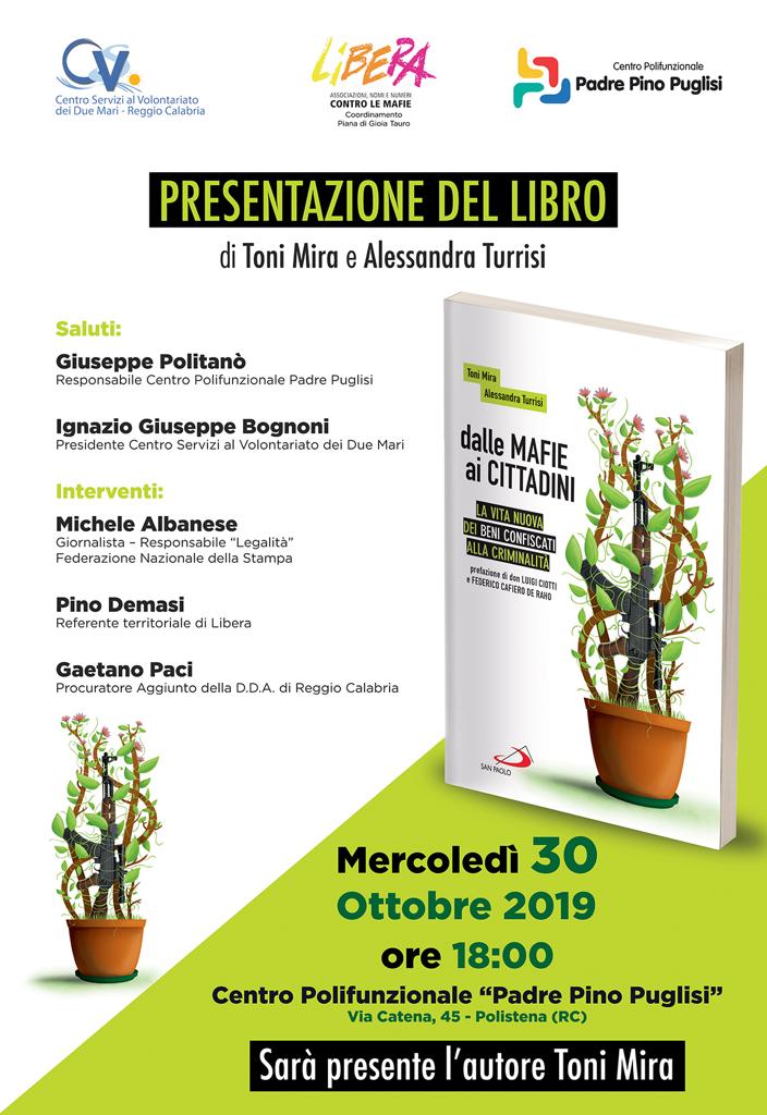 Mercoledì 30 ottobre 2019 alle ore 18.00 presso il Centro Polifunzionale “Padre Pino Puglisi” a Polistena, si terrà la presentazione del libro di Toni Mira e Alessandra Turrisi dal titolo “Dalle mafie ai cittadini. La vita nuova dei beni confiscati alla criminalità”. L’evento è promosso dal CSV dei Due Mari e da Libera e vedrà la partecipazione dell’autore Toni Mira.
