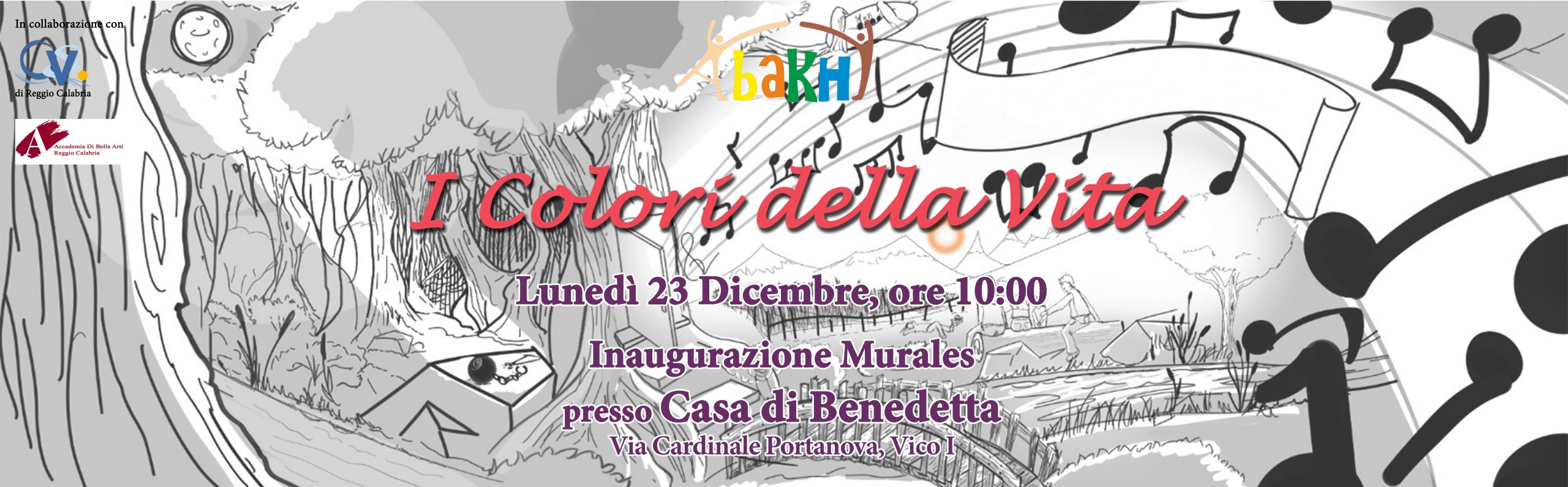 Lunedì 23 dicembre 2019 alle ore 10.00 presso la Casa di Benedetta, sita in Via Cardinale Portanova Vico I, sarà inaugurato il Murales realizzato nell’ambito dell’iniziativa del Centro Servizi al Volontariato dei Due Mari denominata “Microazioni coprogettate per la promozione del volontariato e della cittadinanza attiva”. Un’iniziativa nata dalla volontà del CSV di offrire sostegno a quelle associazioni desiderose di raccontare il volontariato attraverso formule nuove e partecipative. Un’opportunità che l’associazione ABAKHI ha saputo cogliere e tradurre nell’impegno concreto a rendere la Casa di Benedetta, struttura destinata a ospitare minori in condizioni di svantaggio, un simbolo di accoglienza e speranza per tutta la città di Reggio Calabria. Al momento d’inaugurazione tutti i soggetti che con spirito volontario e di condivisione hanno dato un prezioso contributo alla realizzazione del murales, avranno modo di ritrovarsi insieme e confrontarsi sul valore dell’esperienza condivisa. Otre ai volontari di ABAKHI e al CSV dei Due Mari, saranno dunque presenti l’USSM, l’UEPE, l’Accademia di Belle Arti di Reggio Calabria e la Fondazione Benedetta è la vita.