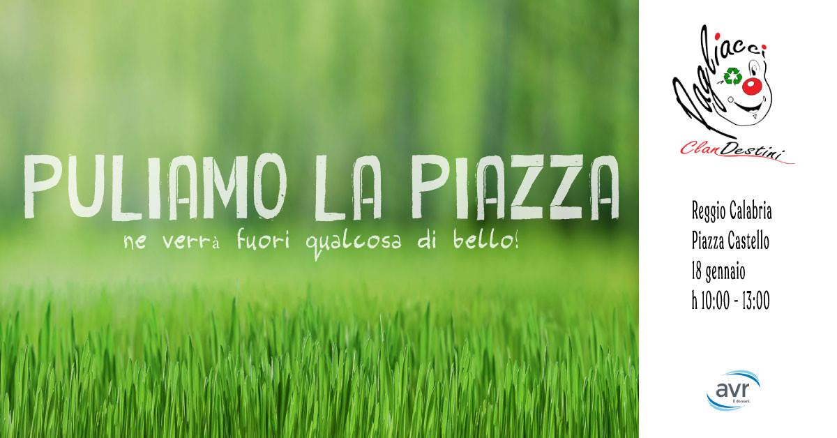 Si svolgerà sabato 18 gennaio 2020 dalle ore 10.00 alle 13.00 a Piazza Castello in Reggio Calabria, l’evento “Puliamo la Piazza” promosso dall’associazione Pagliacci Clandestini.