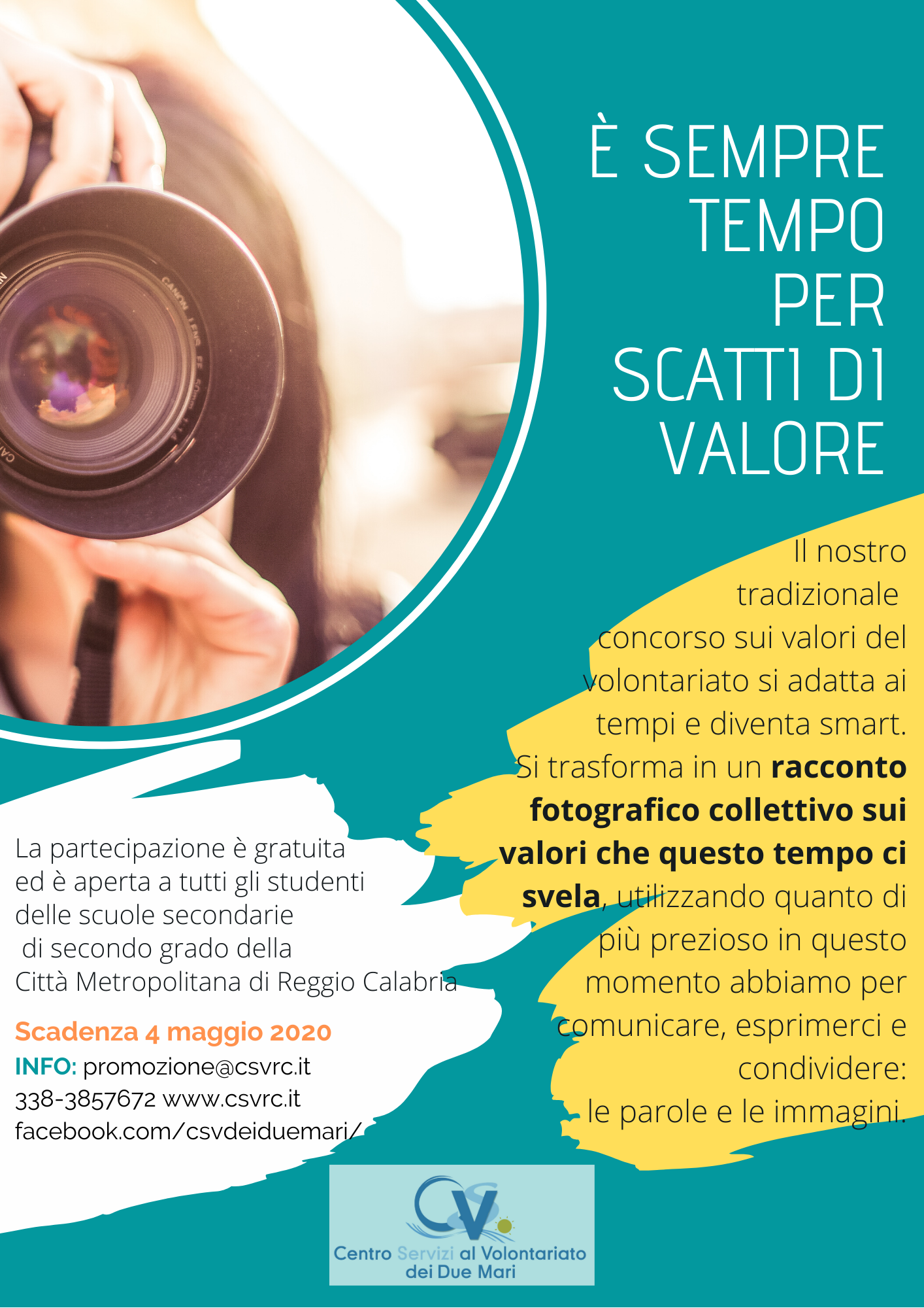 4. Le foto possono essere scattate con qualsiasi apparecchiatura, purché di buona risoluzione, e vannoinviate in digitale all’indirizzo promozione@csvrc.it entro il 4 maggio 2020