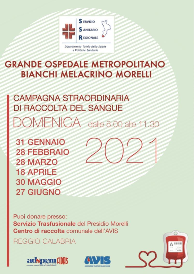 Torna la campagna straordinaria di raccolta sangue del Grande Ospedale Metropolitano di Reggio Calabria. Domenica 18 aprile dalle ore 8.00 alle ore 11.30 sarà possibile donare presso il Servizio Trasfusionale del Presidio Morelli e presso il Centro di raccolta comunale dell’Avis.