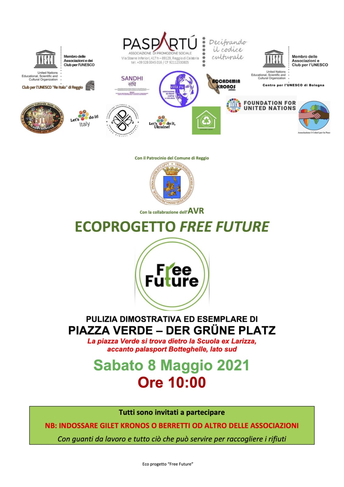 Ecoprogetto Free Future – Pulizia dimostrativa ed esemplare di Piazza Verde – Der Grüne Platz
