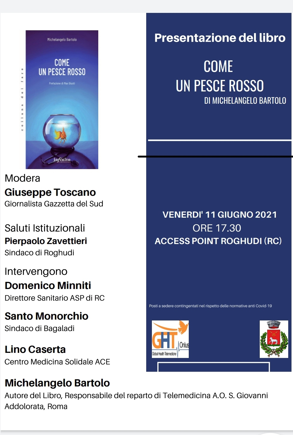 Venerdì 11 giugno alle ore 17.30 presso il Access Point Roghudi (RC), avrà luogo la presentazione del libro di Michelangelo Bartolo dal titolo “Come un pesce rosso”.