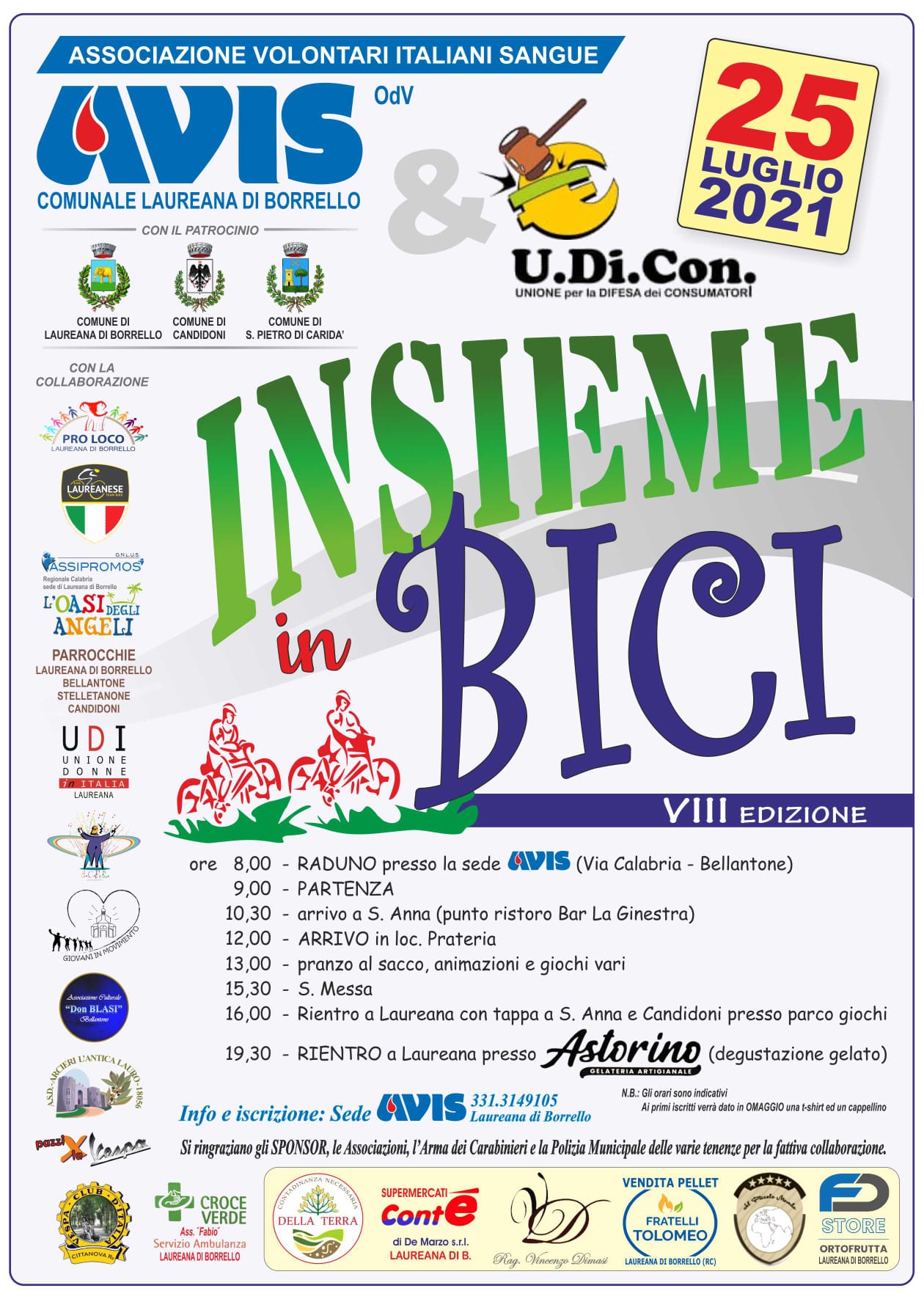 L’AVIS comunale di Laureana di Borrello e l’U.Di.Con organizzano la VIII edizione di “Insieme in bici” che si terrà domenica 25 luglio con inizio alle ore 8.00.