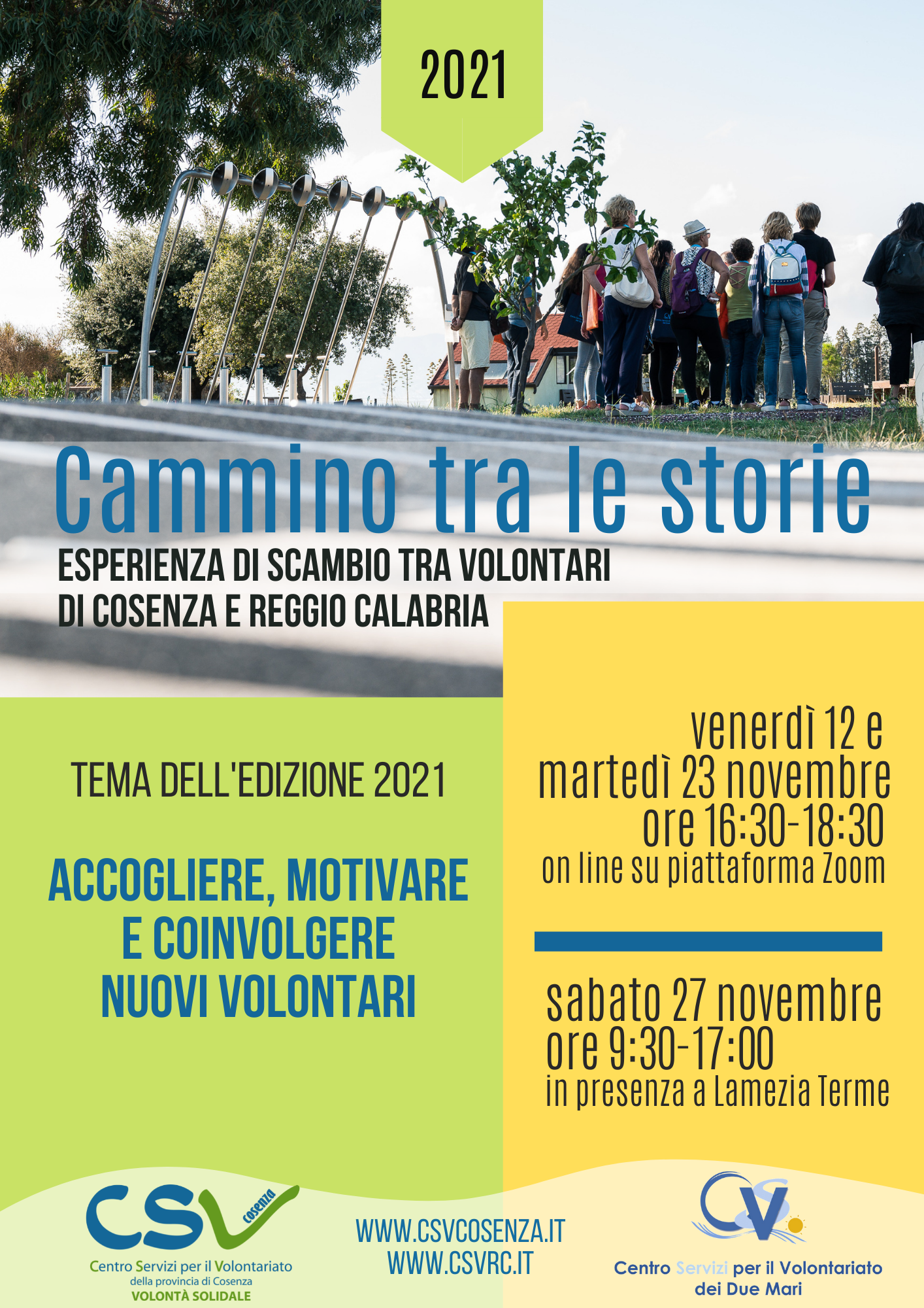 La conduzione delle attività di gruppo sarà a cura degli staff dei CSV di Cosenza e Reggio con il contributo e la supervisione di Glenda Pagnoncelli, docente e formatrice UNIVOL – Università del Volontariato di Milano.