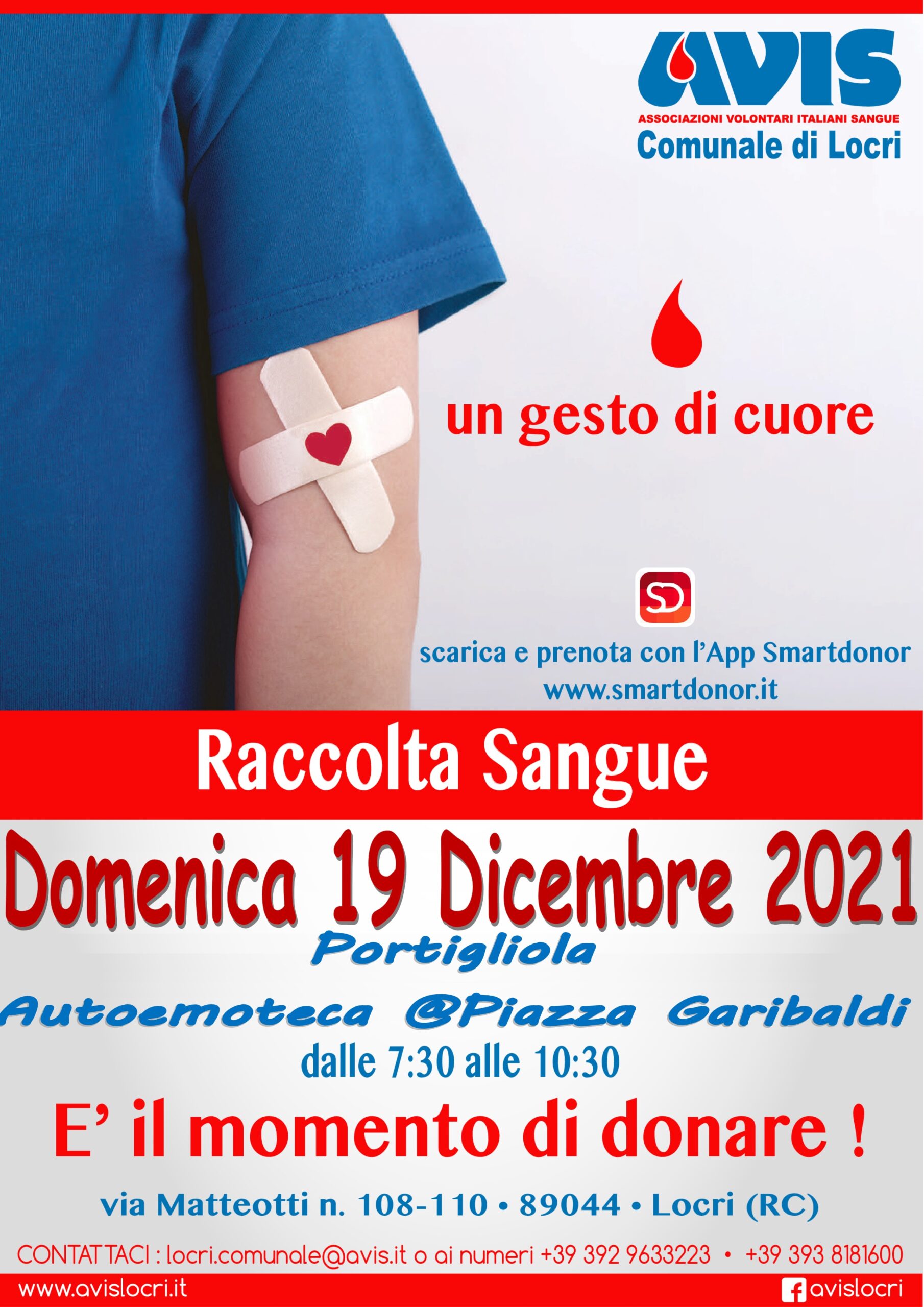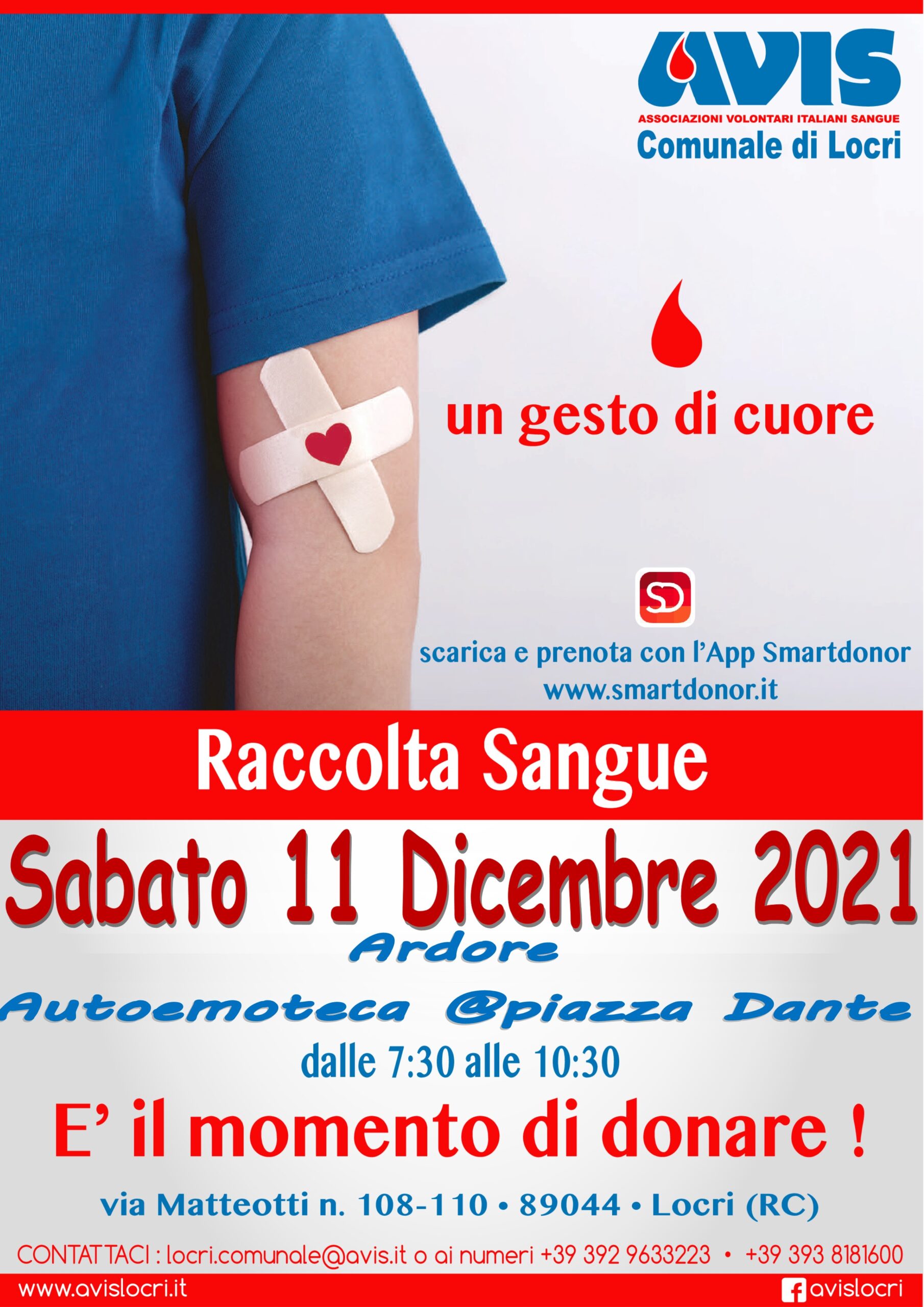 L’AVIS comunale di Locri ha previsto delle raccolte di sangue per il mese di dicembre. Queste le date e i luoghi dove sarà presente l’autoemoteca: