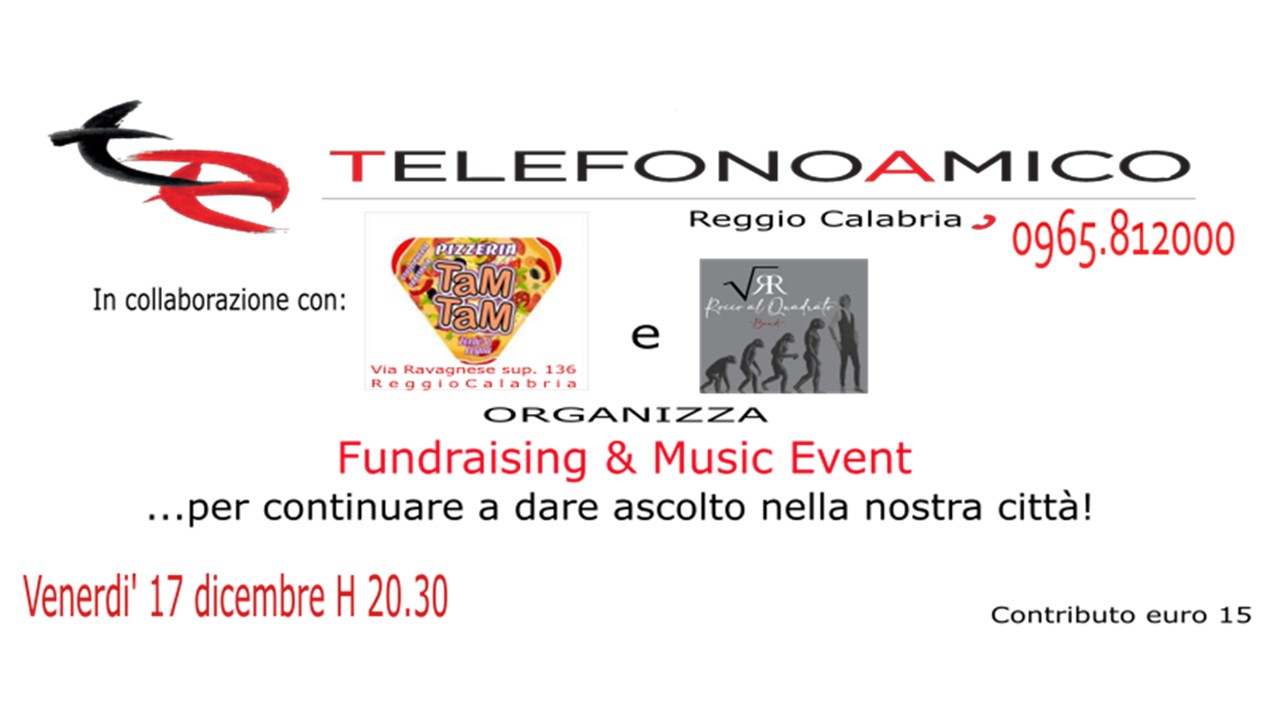 Il Telefono Amico di Reggio Calabria organizza una serata di raccolta fondi e musica presso la pizzeria Tam Tam per venerdì 17 dicembre alle ore 20.30.