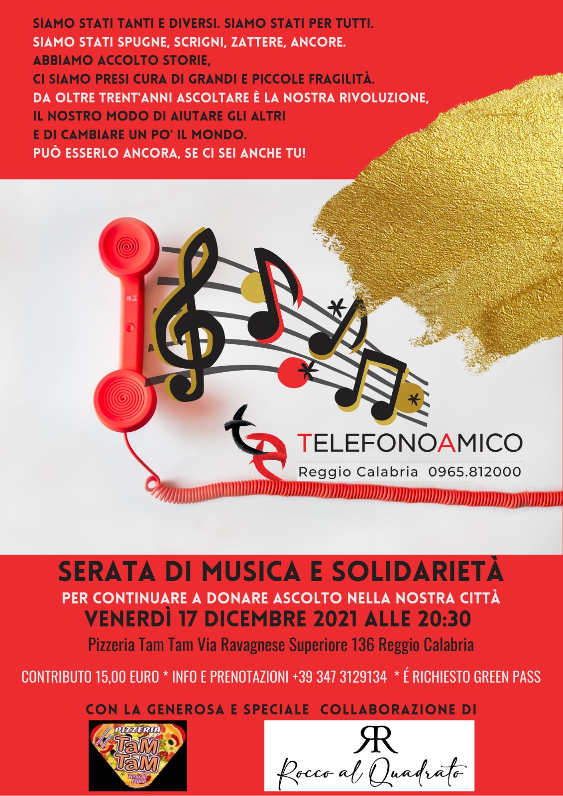 Venerdì 17/12/2021, Reggio Calabria, Serata di musica e solidarietà con Telefono Amico