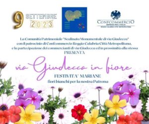 In occasione delle festività mariane, sabato 9 settembre, la Comunità Patrimoniale “Scalinata Monumentale di via Giudecca”, con il patrocinio di Confcommercio Reggio Calabria Città Metropolitana e la partecipazione dei commercianti, promuove “Via Giudecca in fiore”.