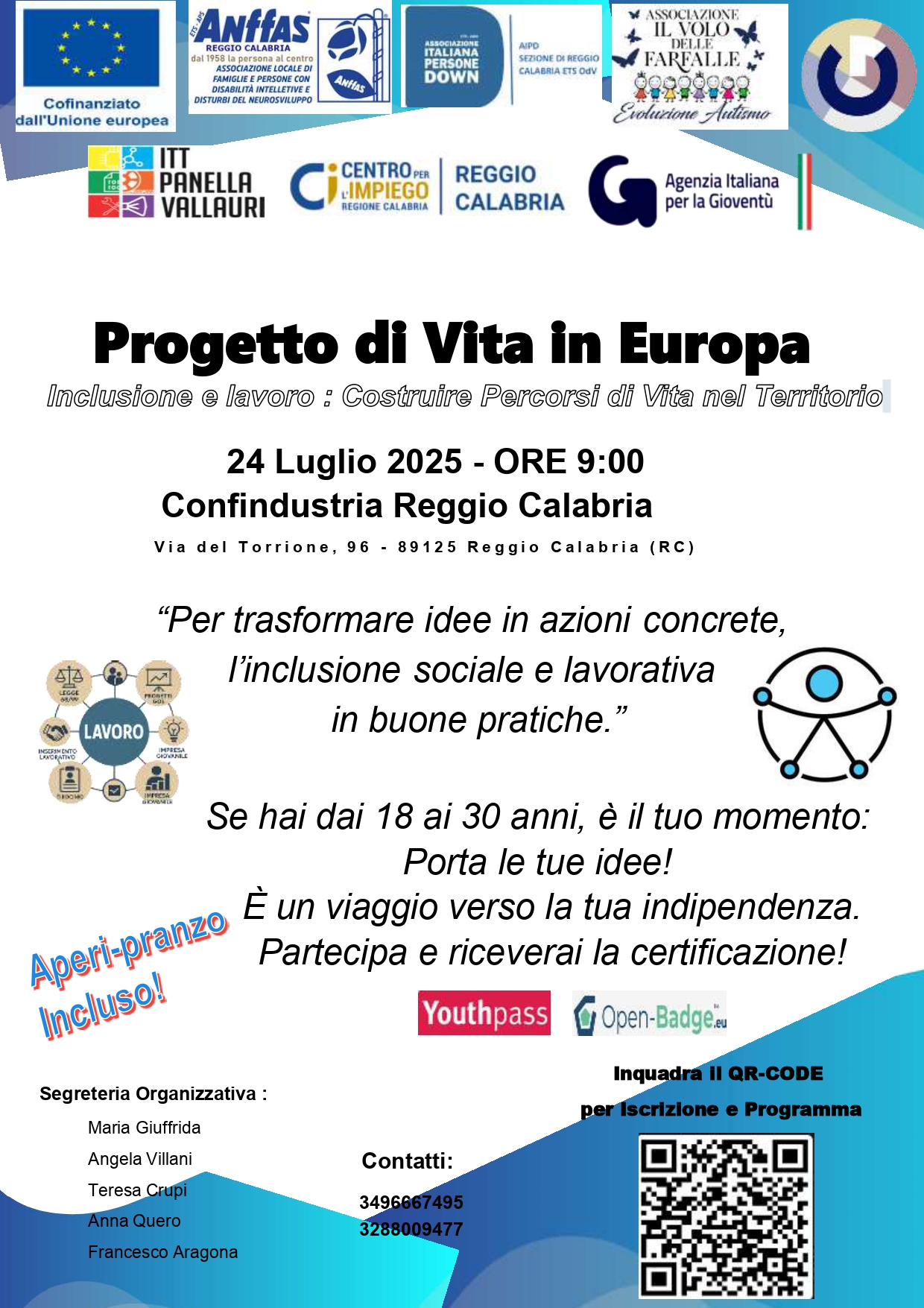 Giovedì 24 Luglio 2025 alle ore 09:00 si terrà il Meeting del Progetto Erasmus “Inclusione e Lavoro: Costruire Percorsi di Vita nel Territorio”, presso sala conferenze Confindustria Reggio