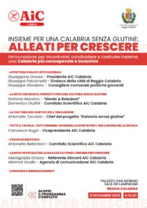 L’Associazione Italiana Celiachia Calabria APS organizza il convegno “Insieme per una Calabria senza glutine: alleati per crescere” che si terrà mercoledì 5 novembre 2025 alle ore 16.00 presso la Sala dei Lampadari di Palazzo San Giorgio – Reggio Calabria.