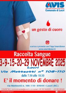 L’AVIS Comunale di Locri comunica le date delle raccolte di sangue per il mese di novembre 2025