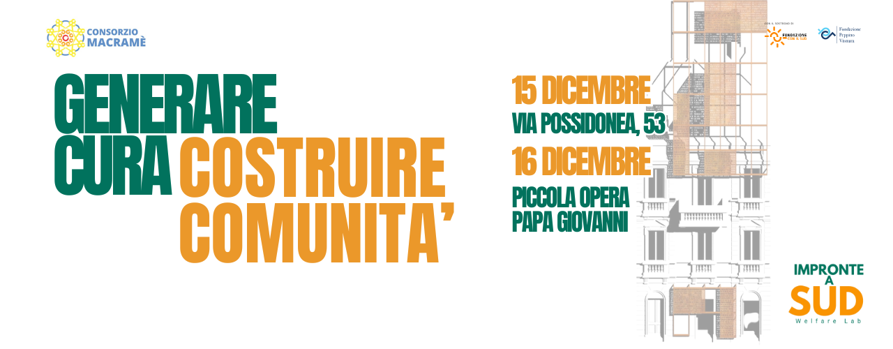 Due giornate concludono il progetto Impronte a Sud – Welfare Lab, 15 e 16 dicembre, Generare cura, costruire comunità