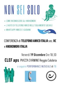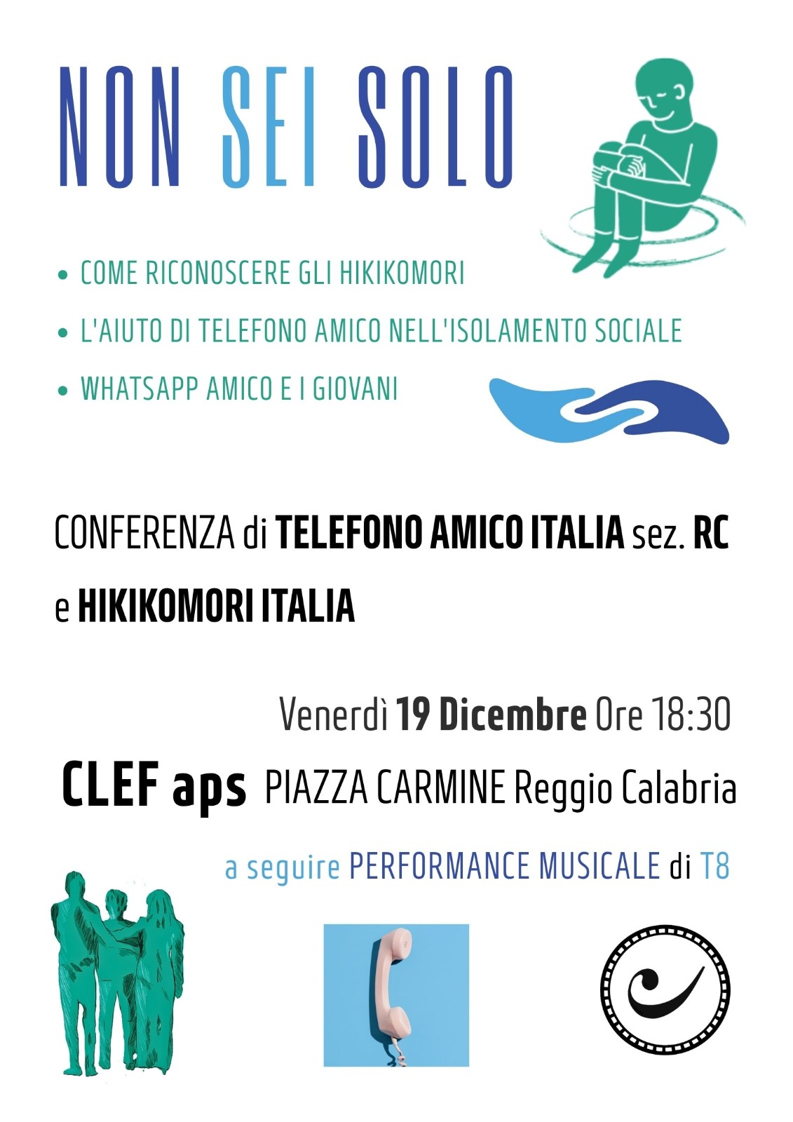 Telefono Amico Italia Reggio Calabria e Hikikomori Italia, organizzano un incontro per approfondire il fenomeno degli hikikomori, ragazzi e ragazze che scelgono il ritiro sociale come risposta a un disagio profondo.