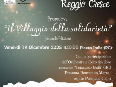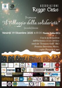 Venerdì 19 dicembre 2025, dalle 16:00 alle 20:00, nella suggestiva cornice natalizia di Piazza Italia, si terrà la seconda edizione dell’evento “Il Villaggio della Solidarietà”, aperto alla cittadinanza e dedicato all’incontro e al sostegno concreto verso chi vive situazioni di difficoltà. L’iniziativa, promossa dall’Associazione ReggioCresce, vedrà la partecipazione di associazioni impegnate socialmente sul territorio, Club Service, aziende, attività commerciali e artisti, uniti nel creare un grande momento collettivo all’insegna della solidarietà natalizia. La parola chiave dell’iniziativa è la condivisione: di tempo, di presenza, di attenzione verso l’altro.