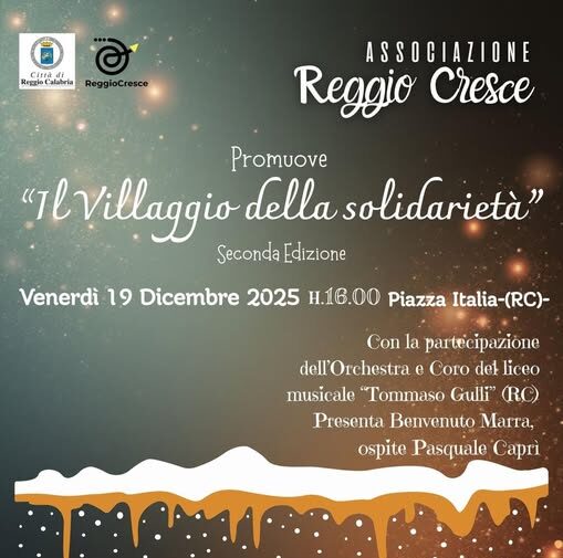 Venerdì 19 dicembre 2025, dalle 16:00 alle 20:00, nella suggestiva cornice natalizia di Piazza Italia, si terrà la seconda edizione dell’evento “Il Villaggio della Solidarietà”, aperto alla cittadinanza e dedicato all’incontro e al sostegno concreto verso chi vive situazioni di difficoltà. L’iniziativa, promossa dall’Associazione ReggioCresce, vedrà la partecipazione di associazioni impegnate socialmente sul territorio, Club Service, aziende, attività commerciali e artisti, uniti nel creare un grande momento collettivo all’insegna della solidarietà natalizia. La parola chiave dell’iniziativa è la condivisione: di tempo, di presenza, di attenzione verso l’altro.