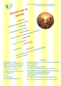 Dal 30 gennaio 2026 inizieranno gli incontri per la FELICITÀ finalizzati a rafforzare l’autostima e a cercare di prevenire la violenza. A questi incontri parteciperanno gli Scout, alcuni Esperti (Educatrice alimentare, fisioterapista), maestra di ballo, di canto, volontari, che aiuteranno a capire cosa fare per provare ad ESSERE FELICI!