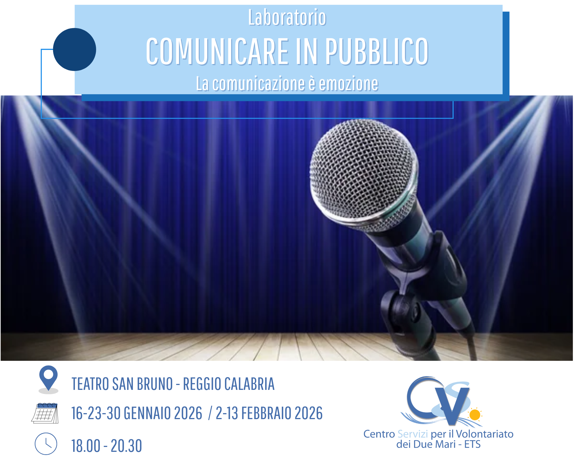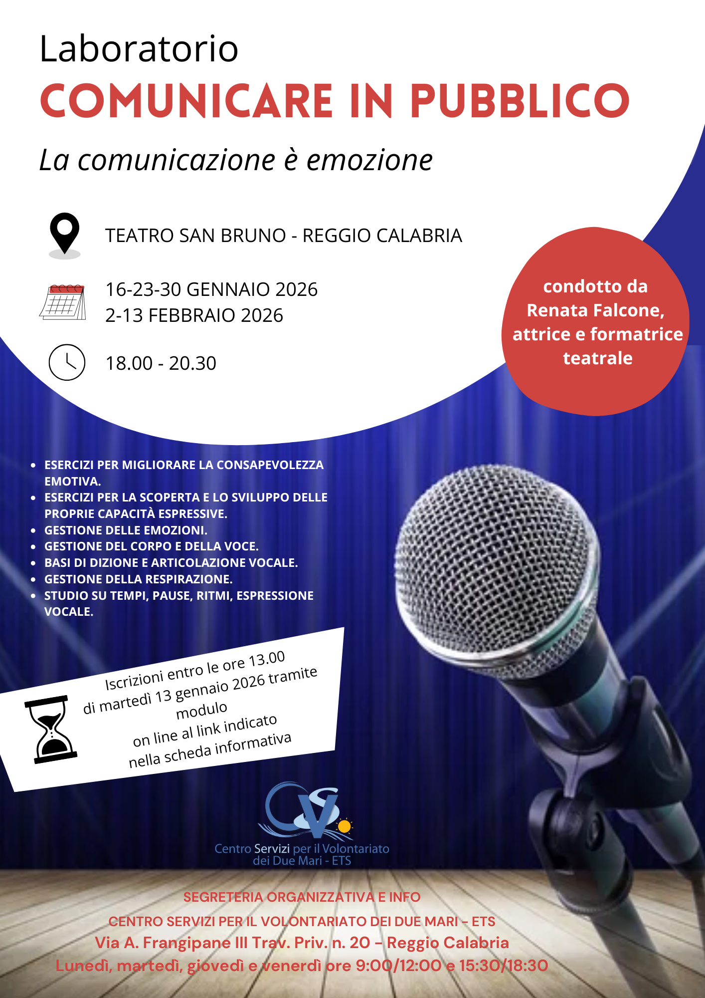 Si svolgerà in presenza nei giorni 16-23-30 gennaio 2026 e 2-13 febbraio 2026, dalle ore 18.00 alle 20.30 presso il Teatro San Bruno di Reggio Calabria.