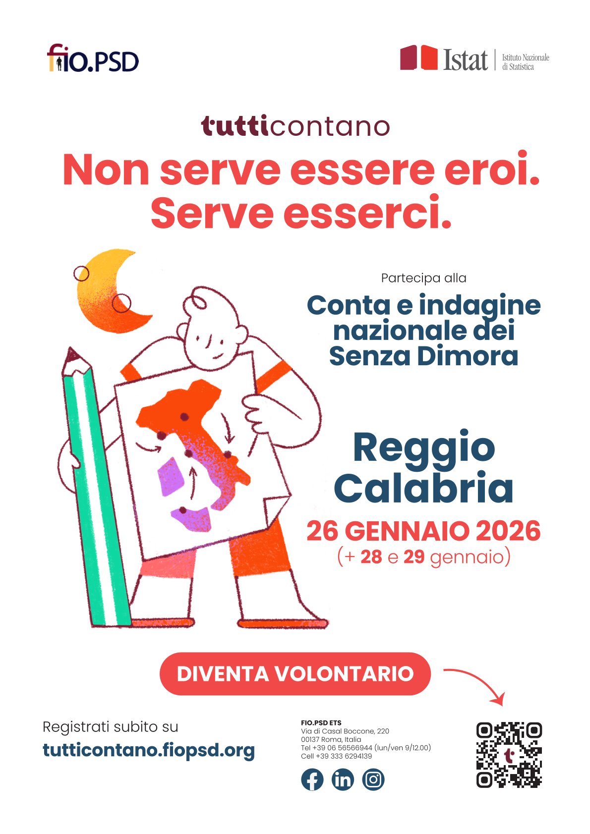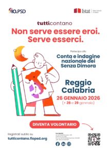 Dal 26 al 29 gennaio 2026 la Federazione Italiana Organismi per le Persone Senza Dimora (FIO.PSD), in collaborazione con ISTAT, realizzerà la Rilevazione nazionale delle persone senza dimora, un’azione fondamentale per aggiornare e migliorare la conoscenza del fenomeno della grave emarginazione adulta in Italia.