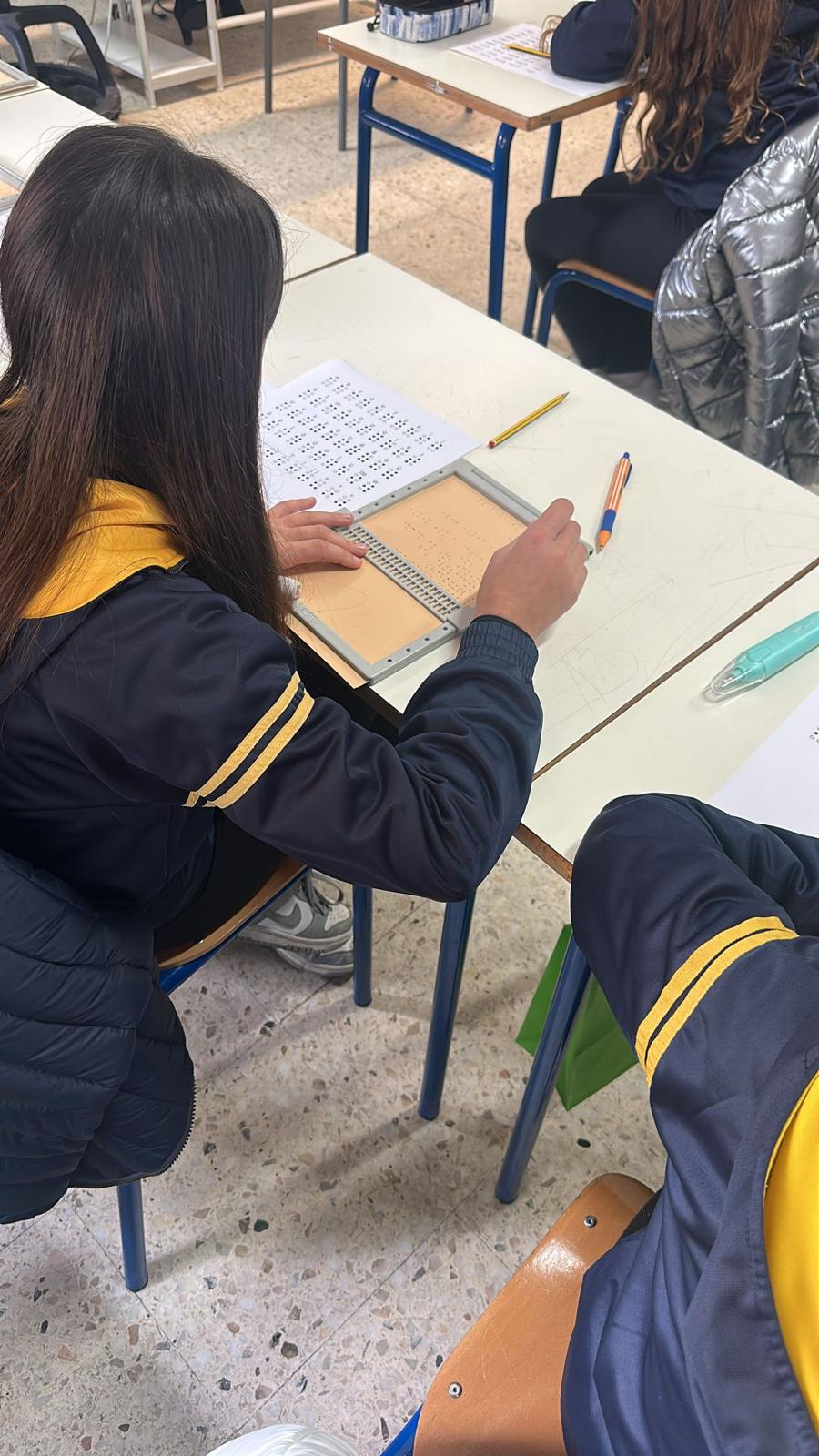 Nel corso delle attività svolte nelle due scuole, gli alunni hanno avuto la possibilità di conoscere da vicino ausili e sussidi utilizzati dagli studenti non vedenti e ipovedenti per lo studio in autonomia. Attraverso un approccio ludico, pratico e interattivo, hanno appreso le basi del sistema di lettura e scrittura Braille, sperimentando l’uso della tavoletta Braille e della dattilobraille e confrontando le diverse modalità operative degli strumenti. Le attività hanno incluso anche esercizi di riconoscimento tattile mediante schede e giochi, talvolta con l’utilizzo di bende, per favorire la comprensione dell’importanza degli altri sensi oltre alla vista.