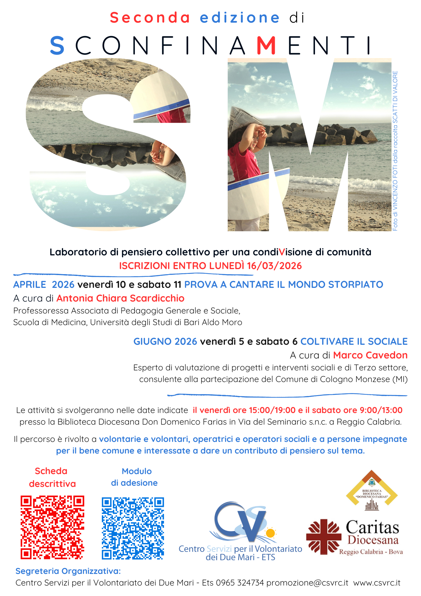 Dopo una prima edizione densa di contenuti, di scoperte e di ispirazioni, in primavera torna SconfinaMenti, il percorso-laboratorio promosso dal Centro Servizi per il Volontariato di Reggio Calabria e Caritas Diocesana Reggio-Bova in collaborazione con la Biblioteca Diocesana Farias.