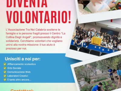 L’Associazione Tra Noi Calabria APS apre le porte a nuovi volontari! Se hai dai 16 anni in su e vuoi dedicare parte... Leggi tutto