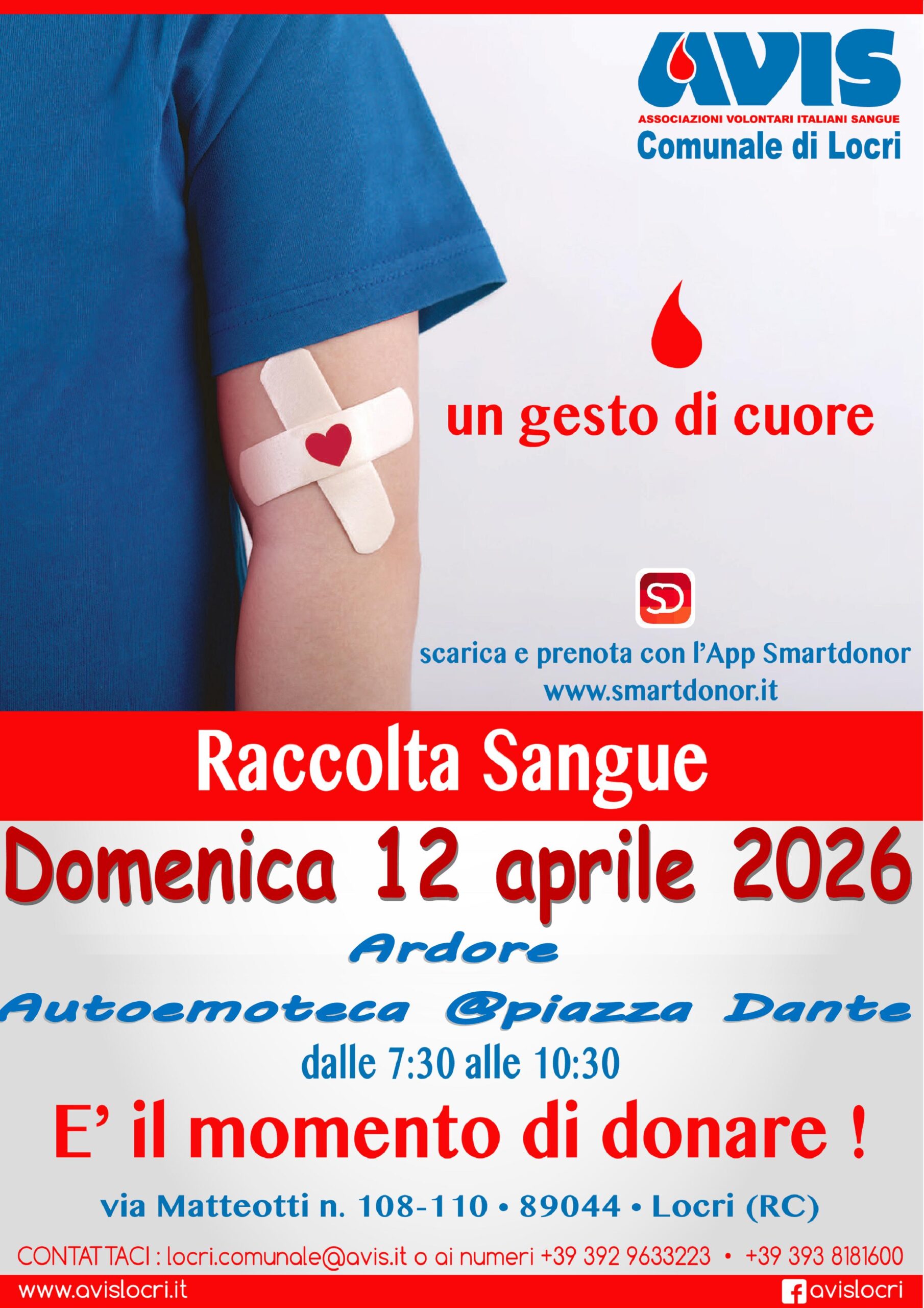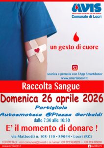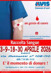 L’AVIS Comunale di Locri comunica le date delle raccolte di sangue per il mese di aprile 2026
